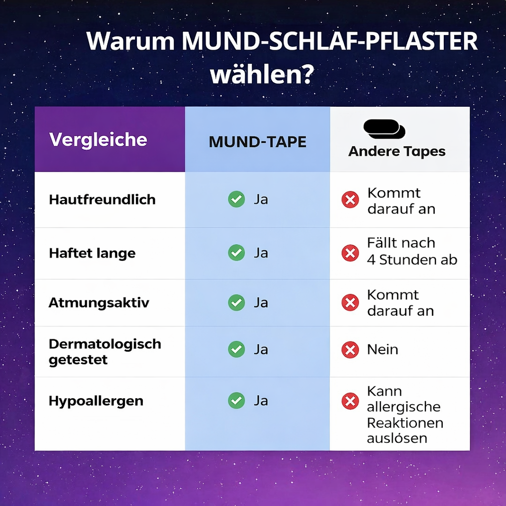 SchlafFix Mundtape wurde speziell für Menschen entwickelt, die nachts endlich wieder ruhig, sicher und gesund durch die Nase atmen möchten.